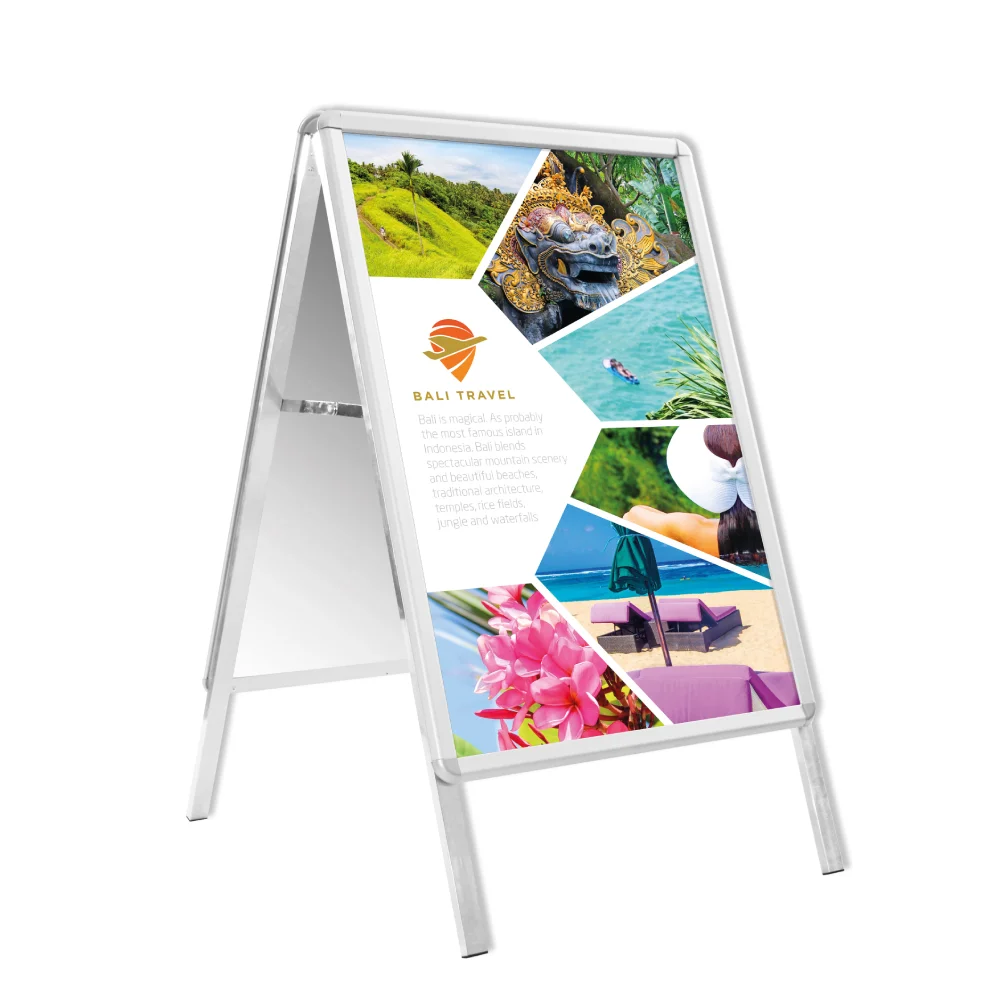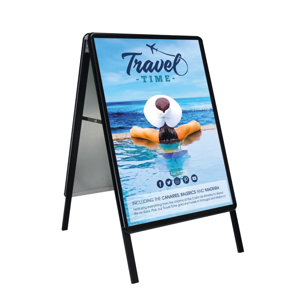 The A-Board is a classic and versatile A-board pavement sign, perfect for businesses looking to capture attention with regularly updated promotions. Featuring a durable aluminium snap-frame design, it allows for quick and easy poster changes while keeping content secure behind an anti-glare protective cover. Its fold-flat design makes it portable and easy to store, making it ideal for cafés, retail stores, salons, and event spaces. Built for both indoor and outdoor use, the A-Master combines practicality with professional impact, offering a cost-effective way to display menus, offers, and advertisements with maximum visibility.